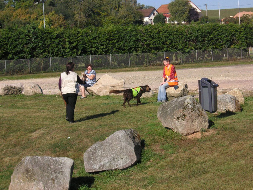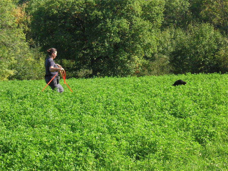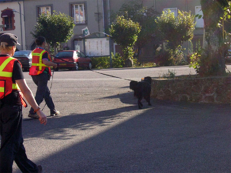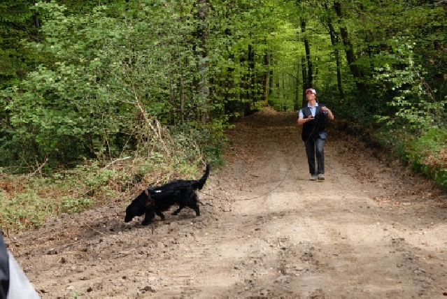 - Avec chaque chien on travaille individuellement : au début sur une piste courte et facile. Puis on augmente le degré de difficulté très progressivement en fonction des progrès ou du niveau spécifique de chaque team conducteur/chien.